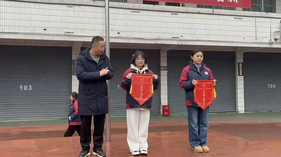 值周干部就上周值周工作开展情况进行了通报。岁启新章,希望表现优异的班级与个人持续发挥模范带头作用,尚有不足的集体与个人奋起直追、精进不休,共同维护一个文明、有序、美好的校园环境。