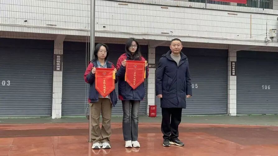 党委委员、纪委书记徐黎明为上周的星级寝室颁发流动红旗,党委委员、副校长吴知了为上周的优秀班集体颁发流动红旗。