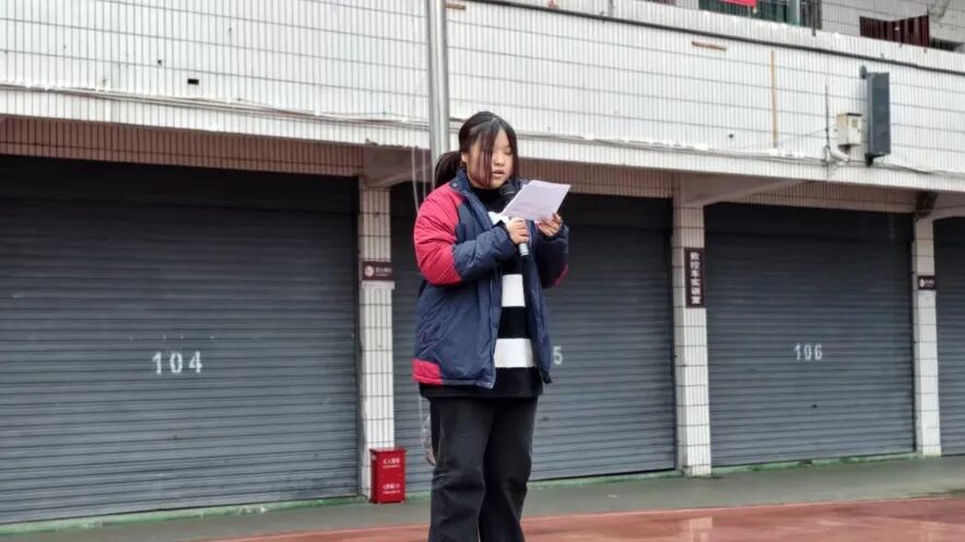 学生代表在国旗下发言,希望全体同学锚定航向、笃行不怠,一起为梦想奋斗,在新的一年共赴学海扬帆之约。