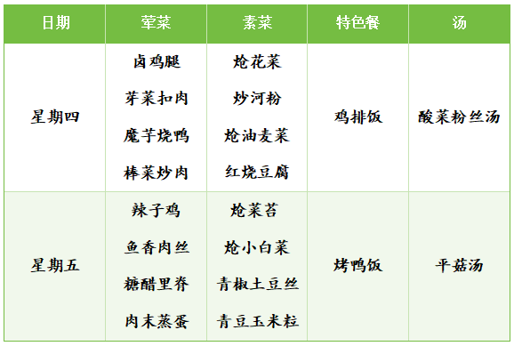 龙门校区第一周食谱