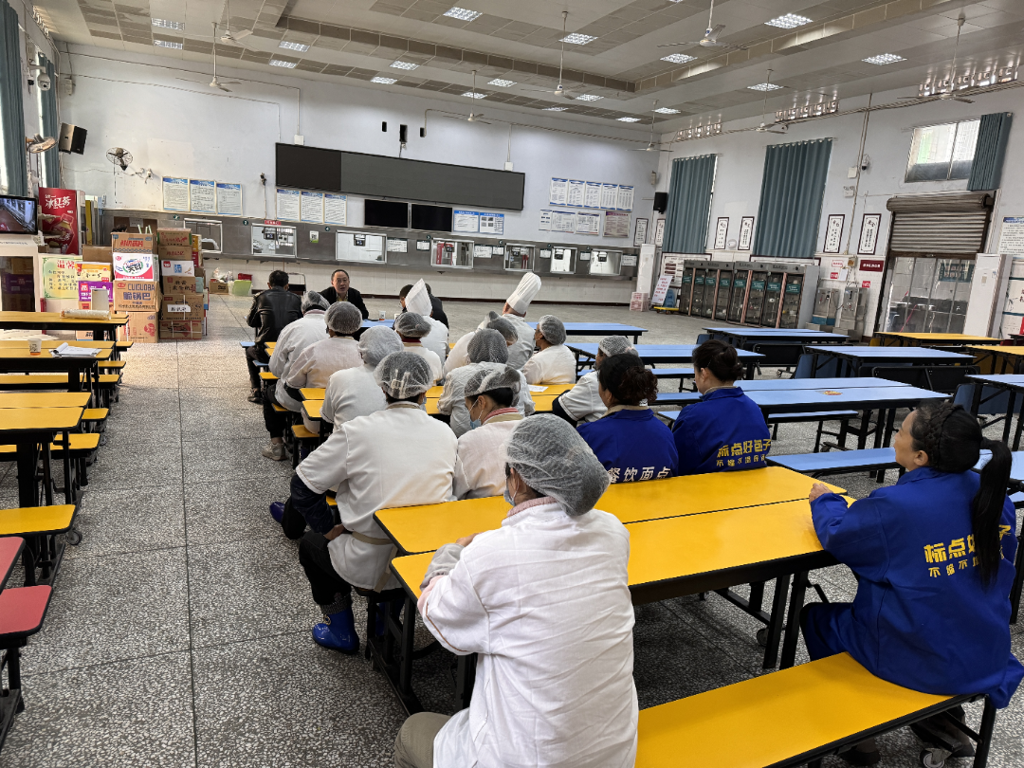 为明确新学期食堂工作的新要求、新期望,开学前,国资科及食堂负责人组织食堂工作人员参加食品安全培训,学习食品安全法律法规、食品加工操作规范、食物中毒预防等知识,确保食品加工过程安全卫生并要求工作人员以热情、耐心、细心的态度为全校孩子们服务,确保孩子们在学校感受到家的温暖。