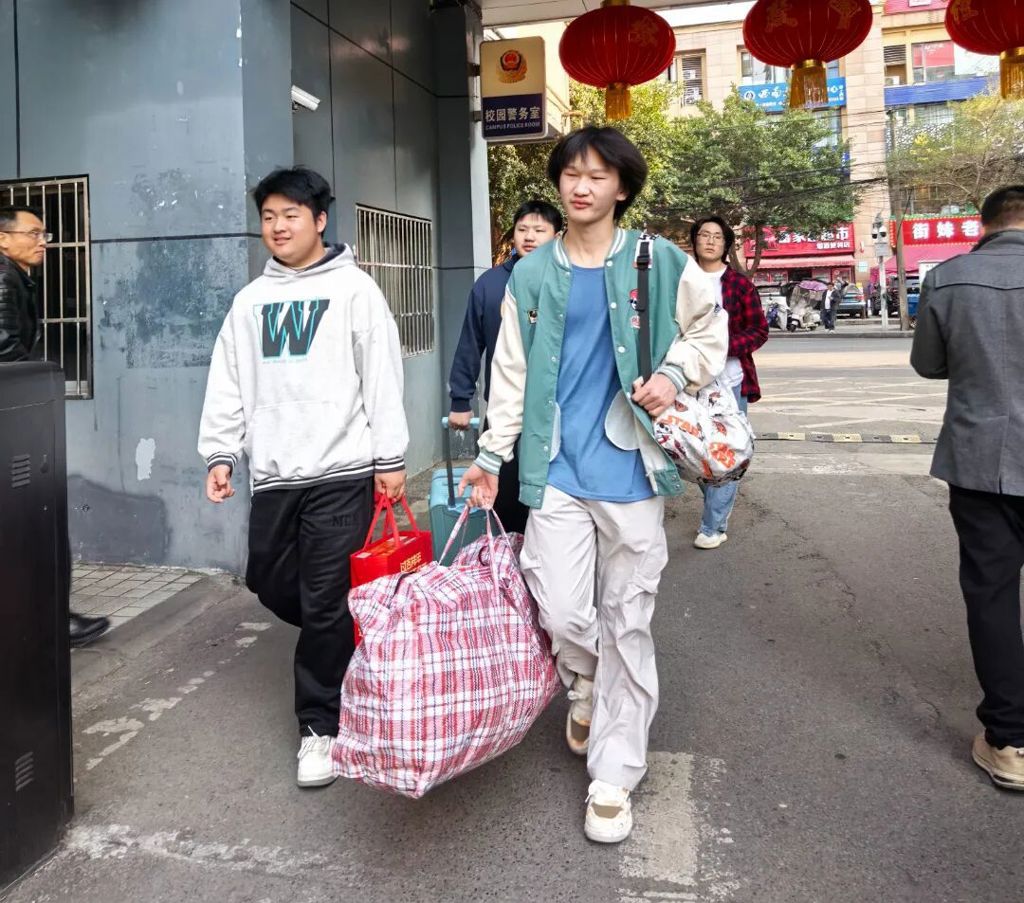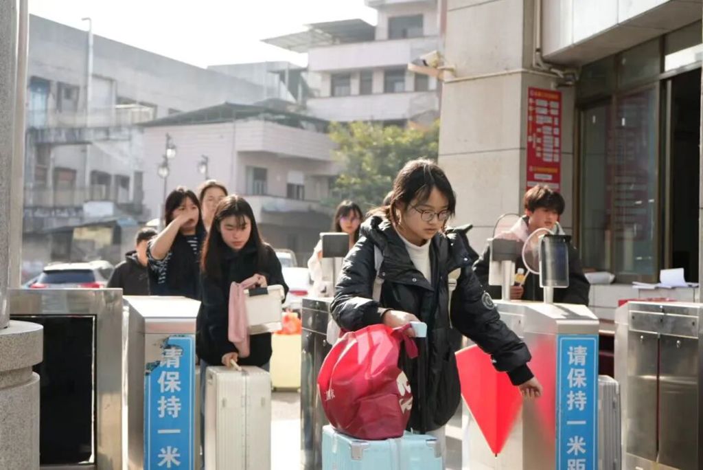 同学们背着行囊,