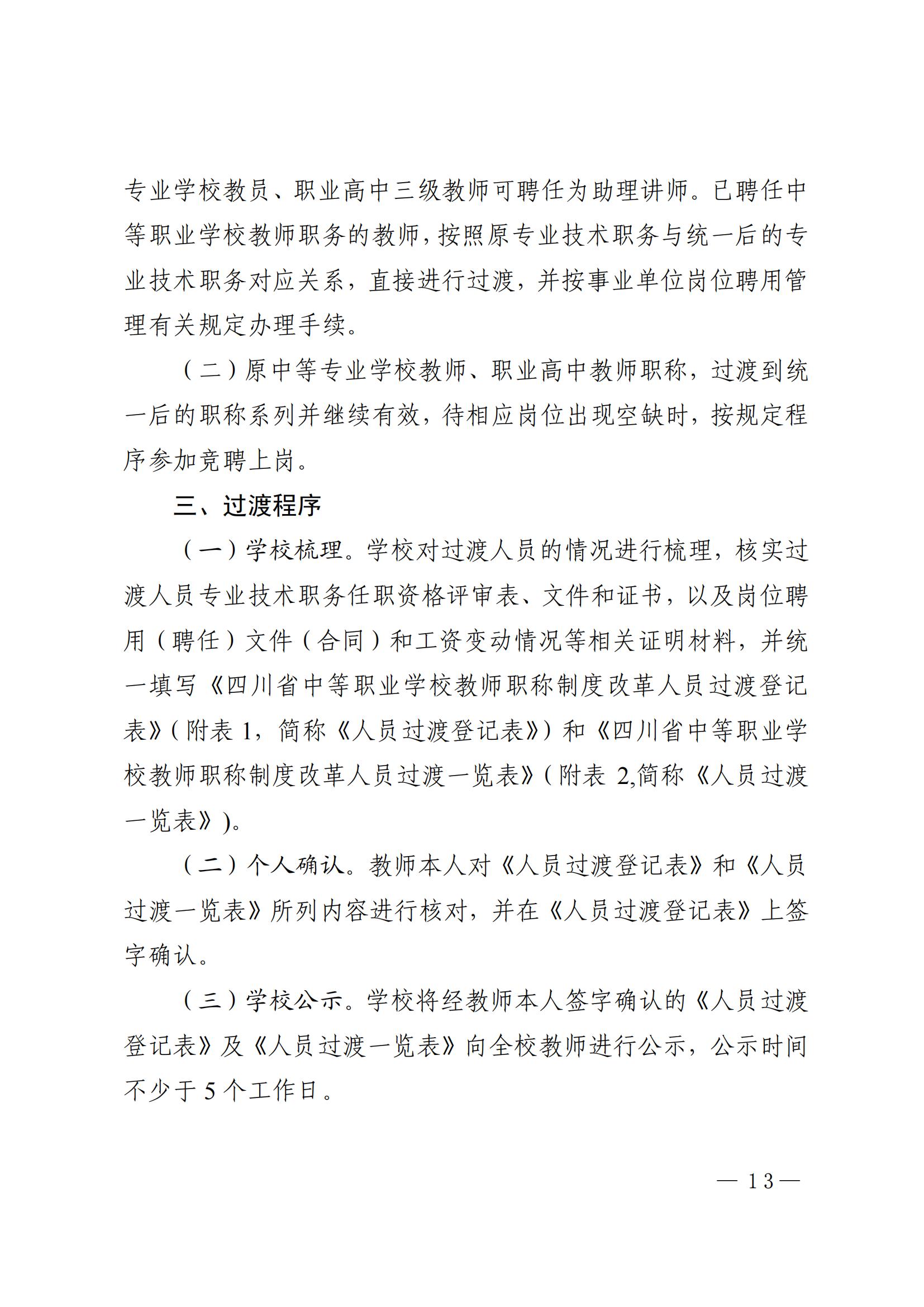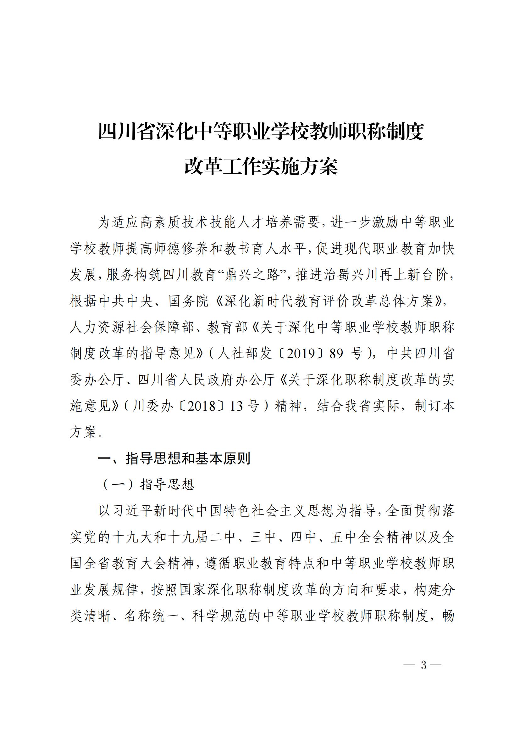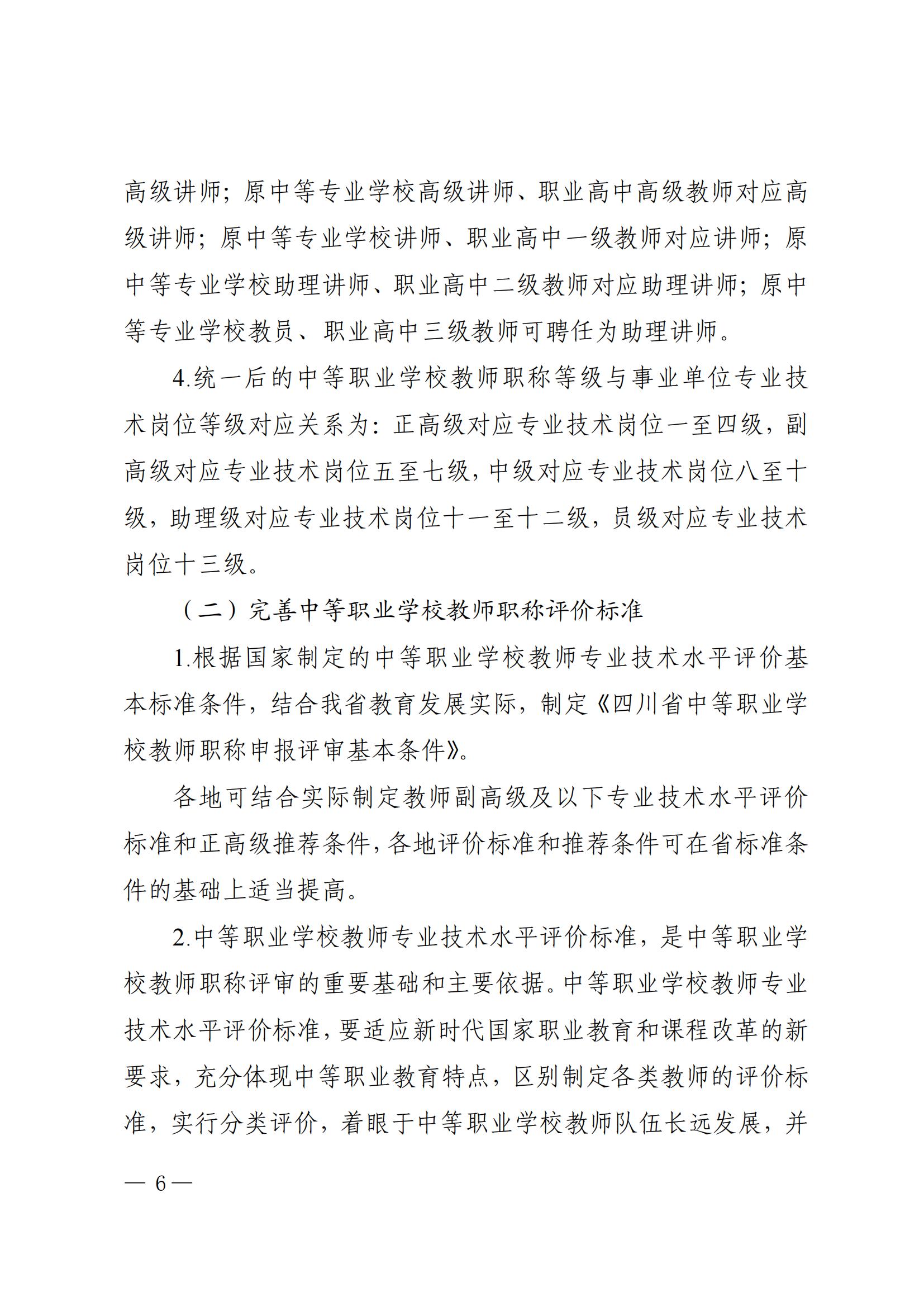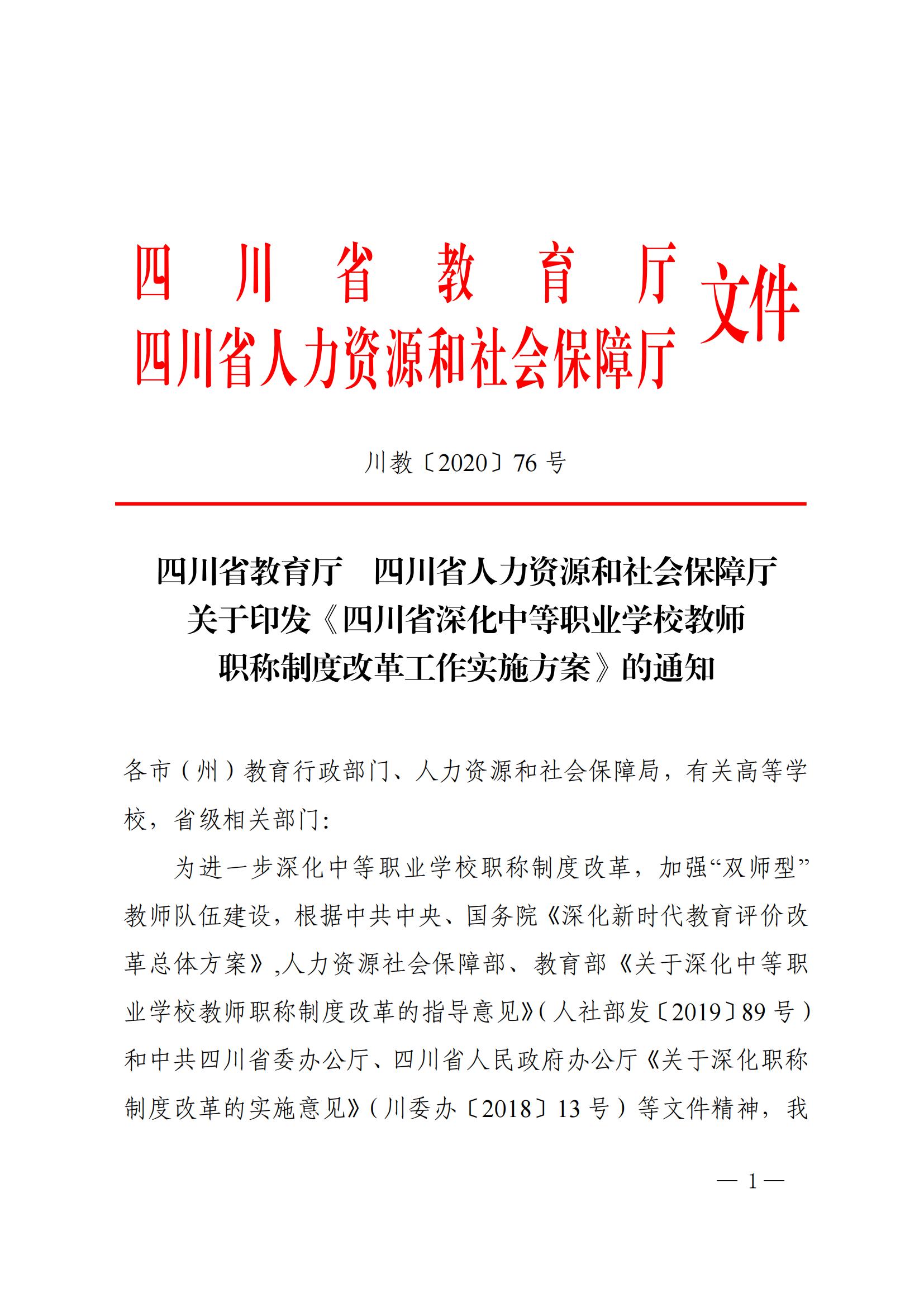 四川省深化中等职业学校教师职称制度改革工作实施方案(川教[2020]76号)