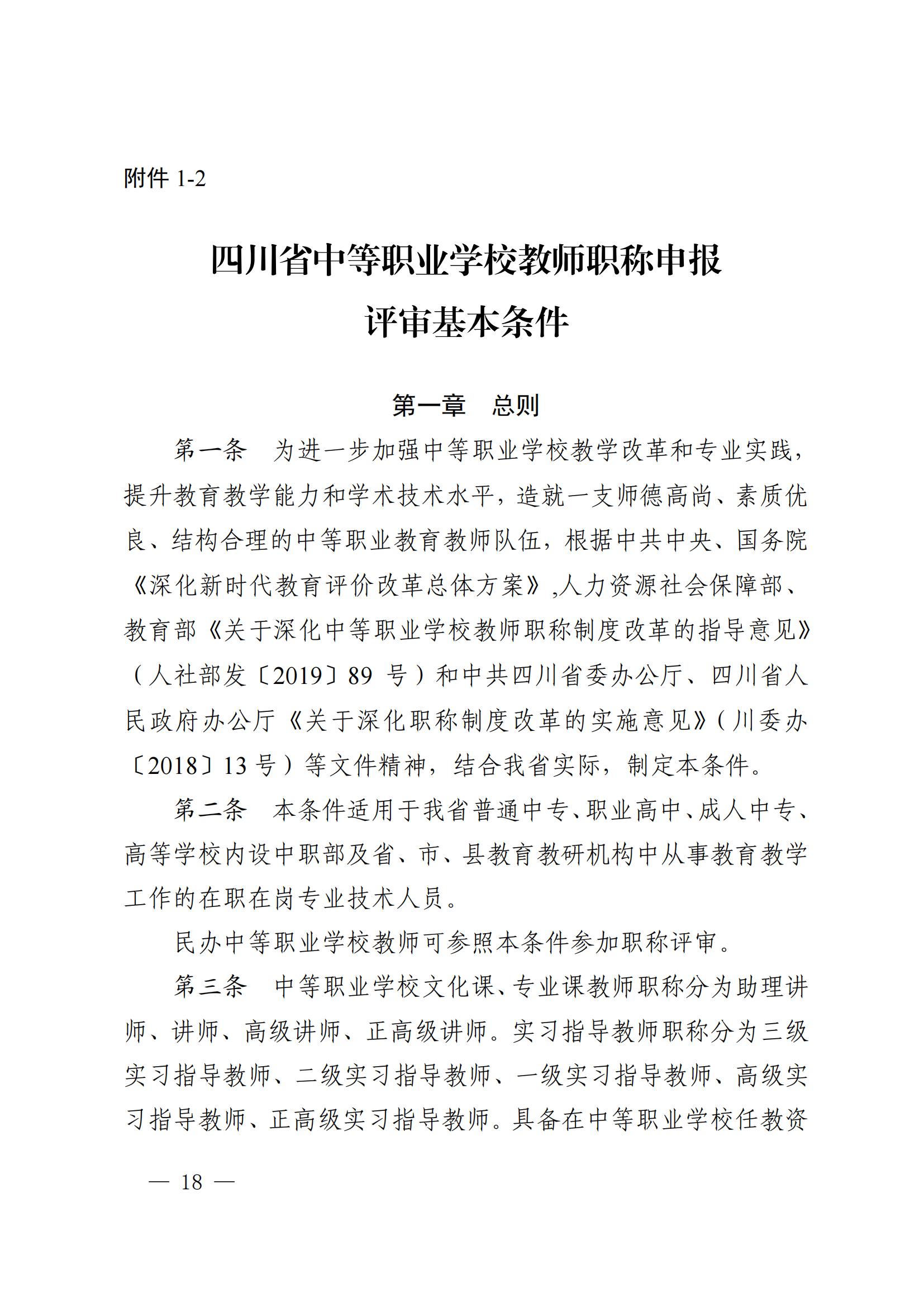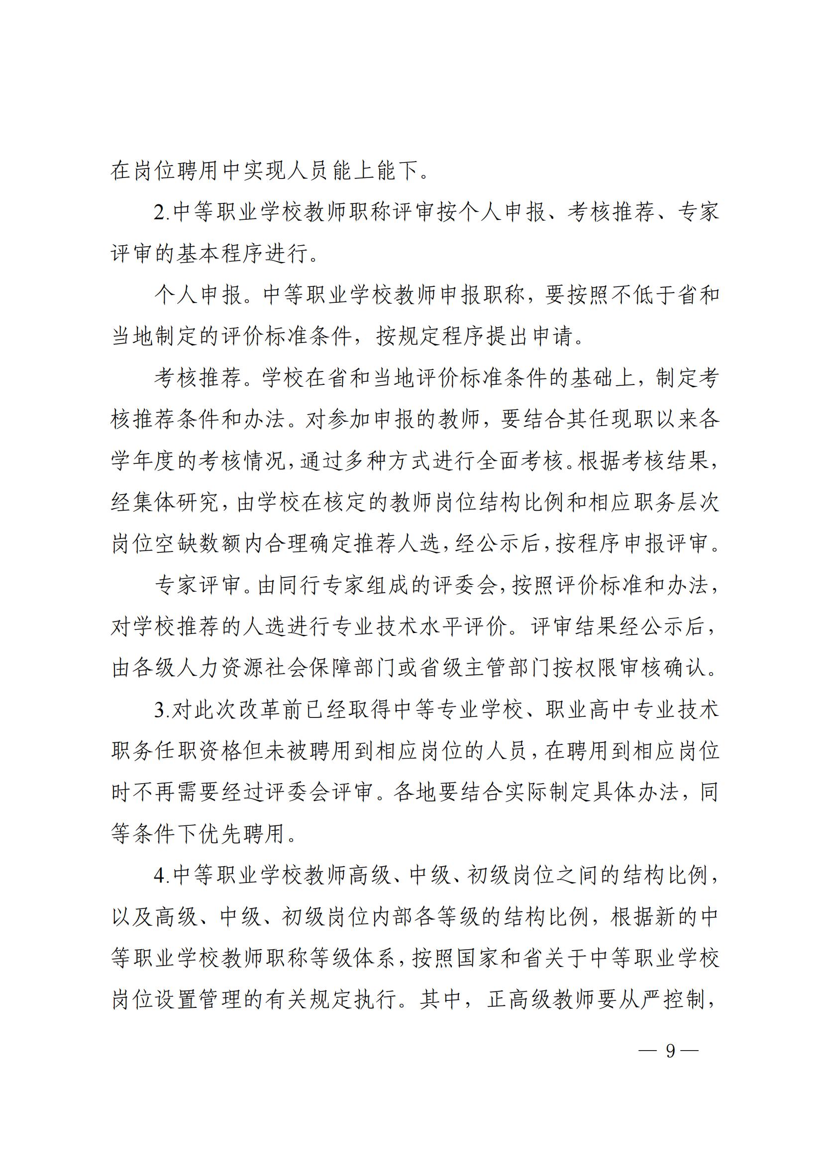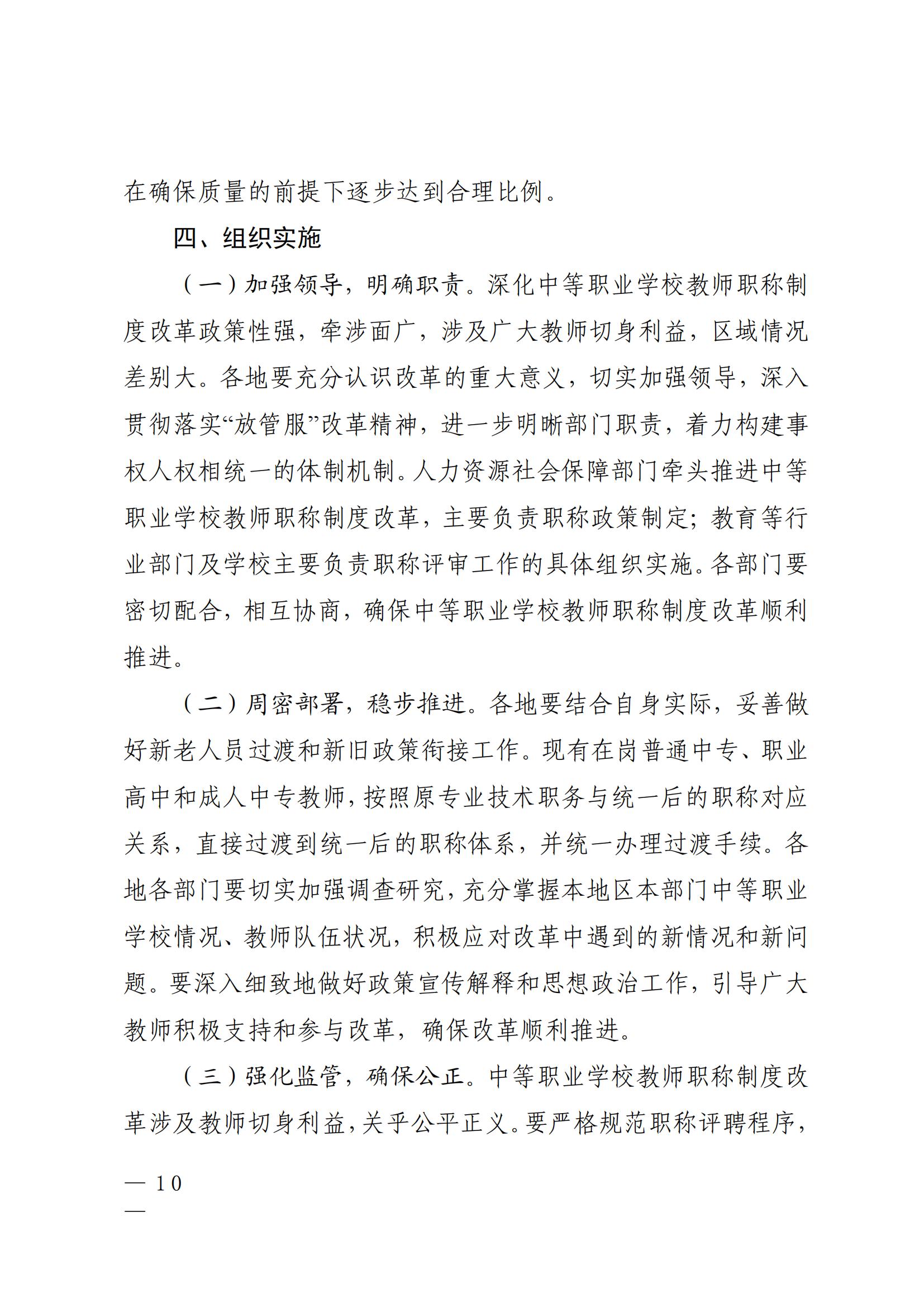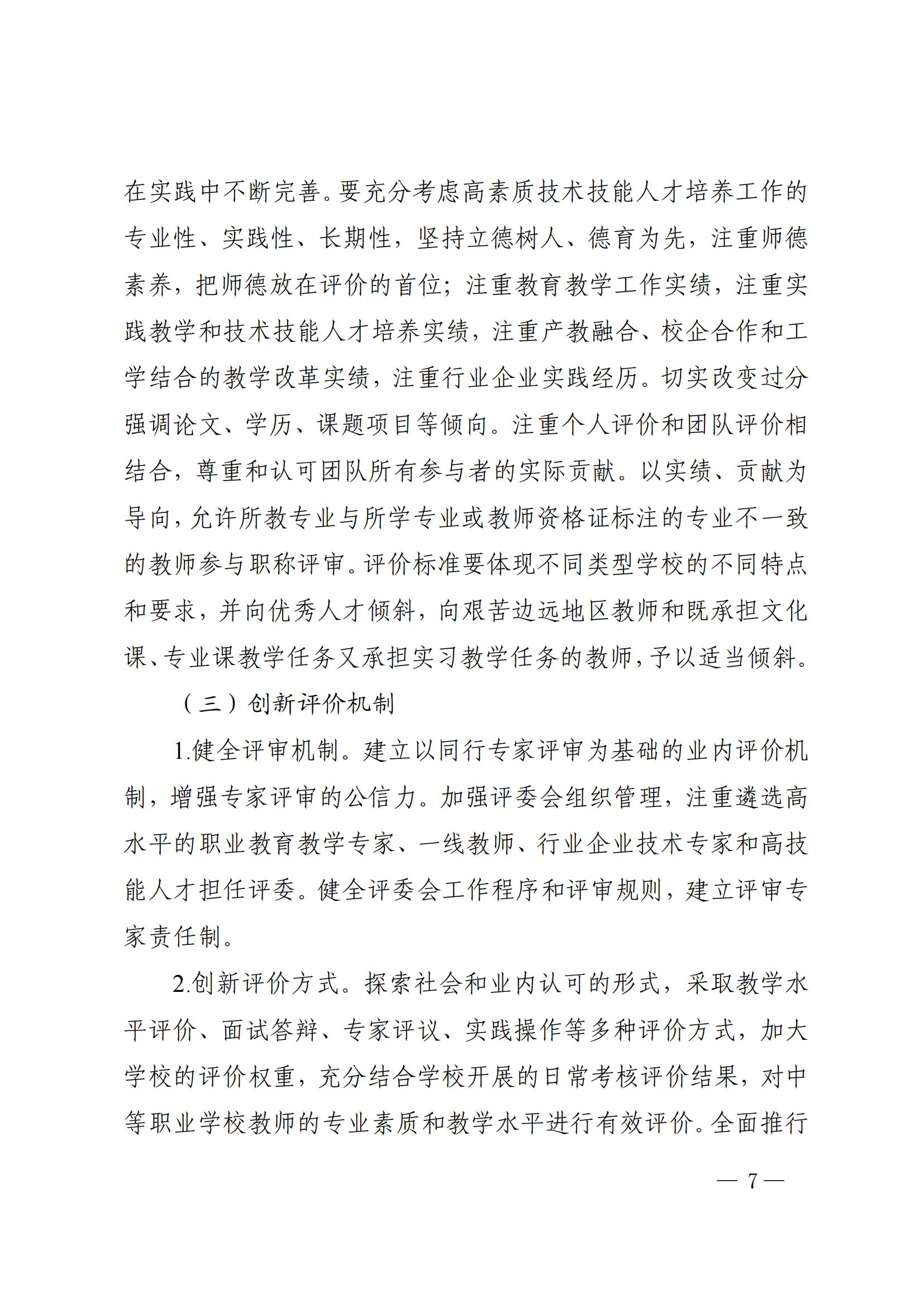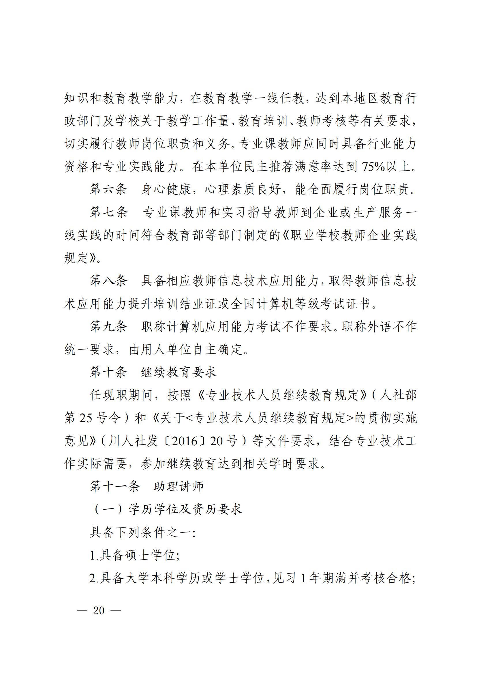 四川省深化中等职业学校教师职称制度改革工作实施方案(川教[2020]76号)