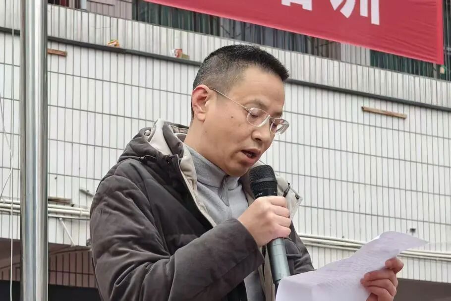 学生代表在国旗下发言,希望全体同学锚定航向、笃行不怠,一起为梦想奋斗,在新的一年共赴学海扬帆之约。