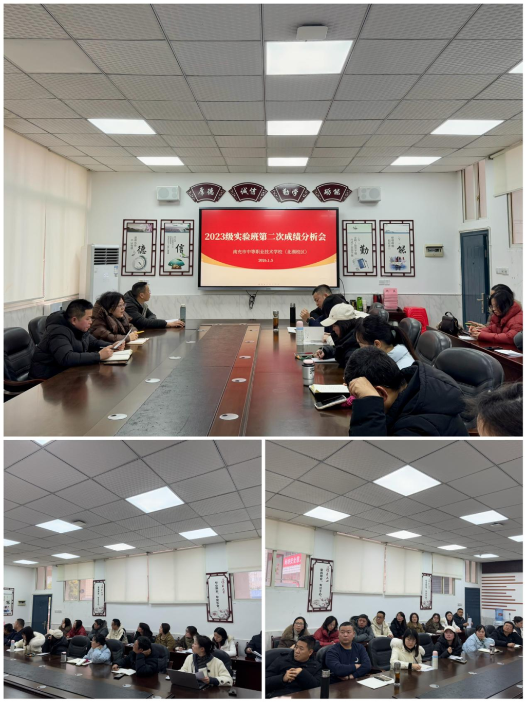 为持续推进2023级职教高考备考工作,南充市中等职业技术学校于2026年1月5日、6日,分校区组织召开2023级第二次成绩分析专题会议。党委委员、副校长吴知了,教务科科长张姝,相关教师出席了会议。